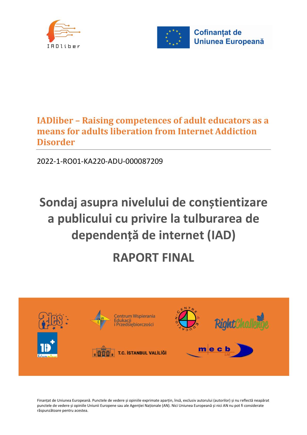 Suntem încântați să vă prezentăm primul rezultat al proiectului IADliber: Ghidul de supraviețuire IADliber. Această resursă cuprinzătoare este concepută pentru a îmbunătăți abilitățile esențiale legate de mindfulness, concentrare, conștientizarea de sine și evaluarea corectă a situațiilor. Scopul nostru este de a ajuta la construirea unei societăți mai educate și mai reziliente, în special prin sprijinirea grupurilor dezavantajate, în fața tulburării de dependență de internet (Internet Addiction Disorder – IAD).